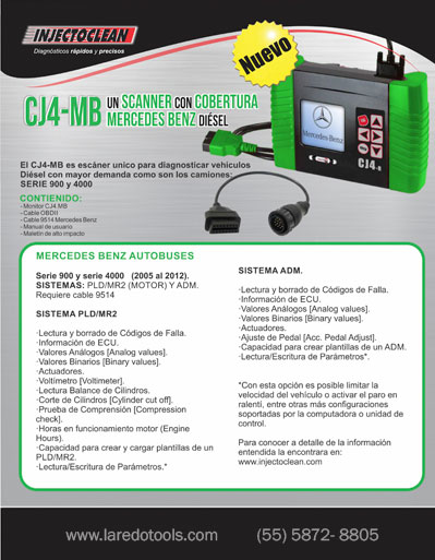 El CJ4-R-MB (Mercedes Benz) es un escáner para vehículos Diésel Mercedes Benz... Solo $15,900 Neto